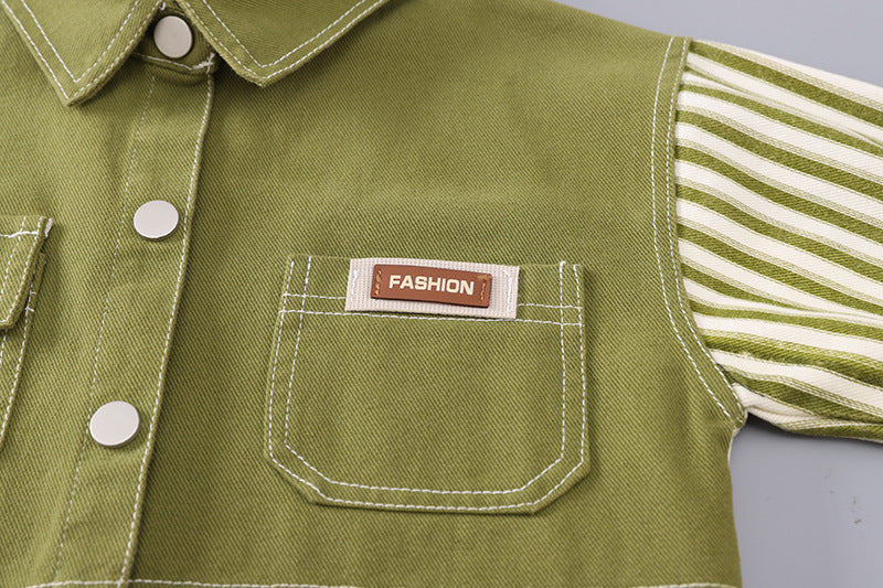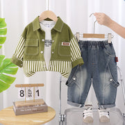 Green Striped Jacket 3-Piece Set – Soft Cotton Outfit