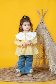 Girl's floral top and jeans set - Yellow / 1.5-2 Years